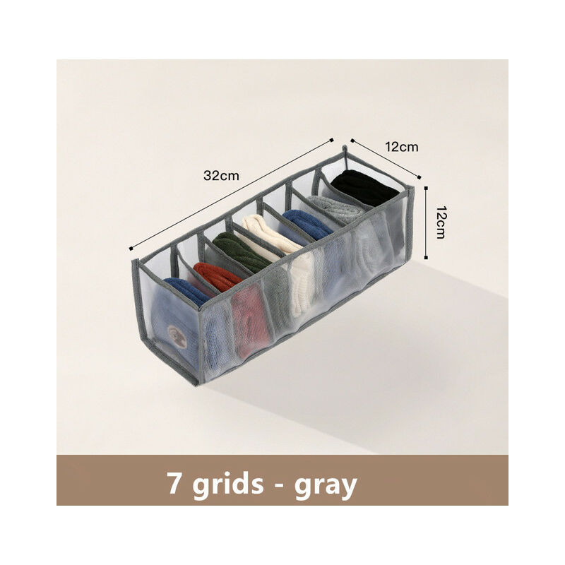 | Feature |=◆1,Fine Fabrics: The closet storage organizer set features the high-quality fabrics, fine mesh, fine workmanship, smooth stitching, which is durable.◆2,Practical in Use: The features various kinds of closet storage organizers, which are perfect for all daily underwear, daily clothes,and the set can be washed without odor.◆3,Fine Appearance: The closet storage organizer set features the fine appearance to be practical in use.◆4,Upgraded Set: The inner grid is heightened and widened, and the capacity is upgraded, the three-dimensional structure of the set is straight, and it can be taken independently without deformation.◆5,Wide Application: The set features the storage compartments, which can be used for underwear, clothes,jeans,socks storage, and the set is clean and tidy.=| Specification |=◆Material: nylon◆Standards: 6 grids, 7 grids, 11 grids,9 grids◆Sizes: as shown in the