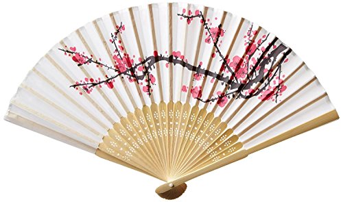 Hand Held Silk folding fans with Bamboo Frame, fiori di ciliegio e farfalle volare tra i fiori modello, confezione da 2