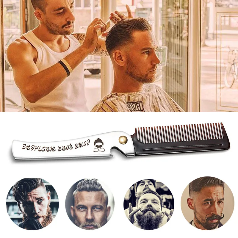 Folding Steel Combs For Men Oil Head Portable Beard Combs Hair Styling Product Combs For Men Foldable Hair Comb Corkscrew