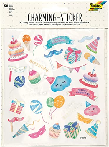 Folia Charming Sticker SummerTime, 58 Adesivi in Diversi Motivi, Facili da staccare dalla Pellicola, Multicolore, taglia unica