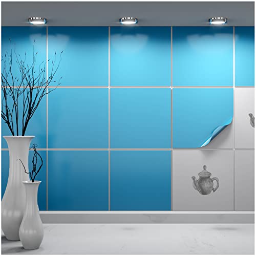 FoLIESEN - Adesivi per piastrelle 20x20 cm | Adesivi murali autoadesivi per bagno e cucina in grigio I Resistenti ai graffi e rimovibili | 10 Decalcomania per piastrelle, Blu pallido lucido
