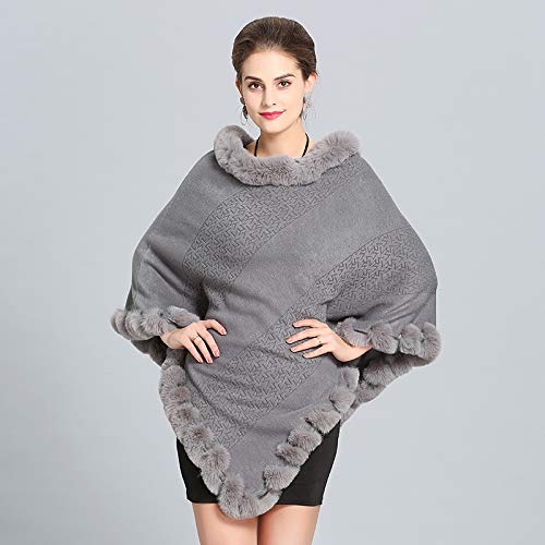 FOLOBE Poncho da donna in pelliccia sintetica oversize mantello elegante scialle avvolgente con colletto in pelliccia sintetica, grigio, Etichettalia unica