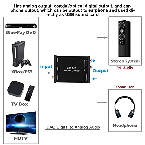 FOLOSAFENAR Convertitore Audio DAC USB - Convertitore Audio Anti-interferenza con Uscita Digitale analogica/coassiale/Ottica - con interfaccia da 3,5 mm