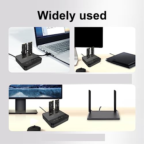 Massima Efficienza con Dual Bay: Questo avanzato duplicatore SSD M.2 è dotato di 2 dual bay, progettati per adattarsi a 2 SSD M.2 (formati 2230, 2242, 2260, 2280, 22110). Questo significa che puoi duplicare o clonare due unità SSD simultaneamente, migliorando notevolmente l'efficienza del tuo lavoro.
