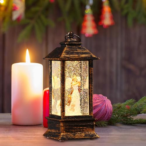 Folpus Centrotavola natalizio illuminato con globo di neve, lanterna, ornamento natalizio, luce notturna per camera da letto, Angelo
