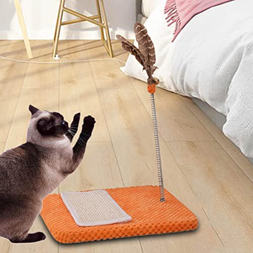 Folpus Tiragraffi per Gatti con Rompicapo a Molla, Giocattolo Interattivo per Gatti Da Interni, Giocattolo, Ottimo per Gatti di Tutti I Tipi E Dimensioni, Piuma arancione