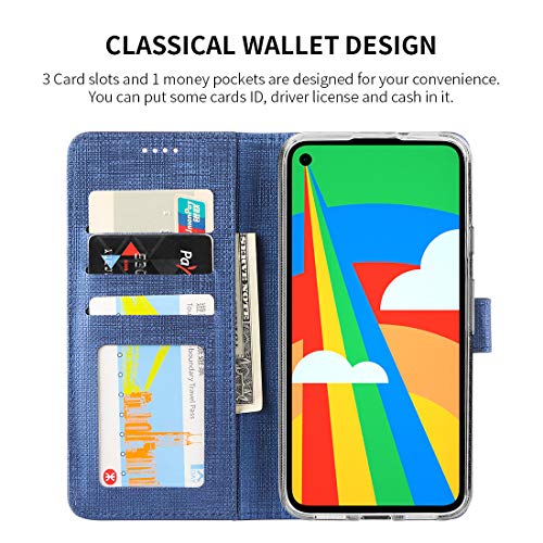 Foluu - Custodia a portafoglio per Google Pixel 5, Pixel 5, in tela di canapa, con funzione di supporto, ultra sottile, resistente, chiusura magnetica, per Google Pixel 5 2020, colore: blu