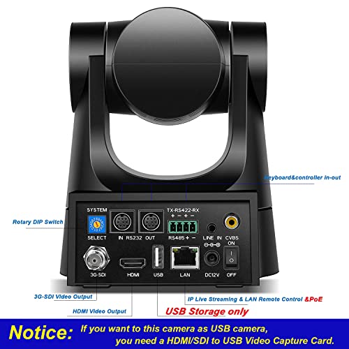 Streaming 3G-SDI, HDMI e IP simultaneo. Supporta la funzione PoE. Zoom ottico 20X, uscita HDMI e 3GSDI, distanza di trasmissione effettiva fino a 100 m.