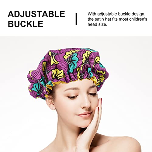 Fomiyes, cuffia in raso a doppio strato, regolabile, in morbido raso, per la doccia, per coprire i capelli lunghi e spessi, colore viola