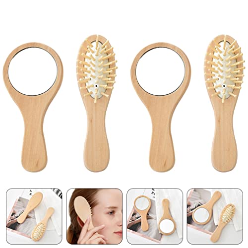 FOMIYES 2 Set Pennello D'epoca Specchio Per Il Trucco Portatile Spazzola Per in Dinglehopper Piccolo Specchio Cosmetico Spazzola Per Depoca Abito Cuscino D'aria Di Legno Decorare Viaggiare