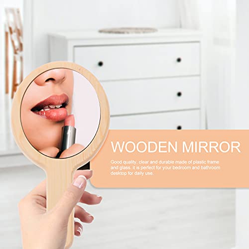 FOMIYES Specchio Cosmetico Portatile Specchio Portatile Specchietto Compatto Specchio Da Parrucchiere a Mano Piccolo Specchio Cosmetico Manico in Legno Bicchiere Mancare Metallo