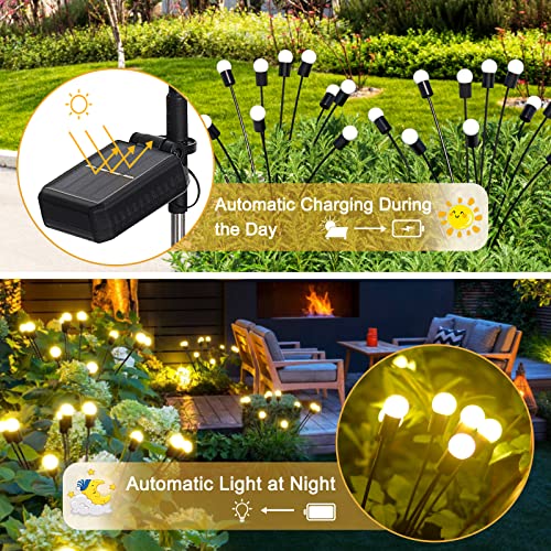 ✨【Firefly Solar Lights】: Solar Garden Lights le lucciole lo accendono per renderlo un grande creatore di un'atmosfera romantica. Gli steli sono morbidi ed elastici, quindi le lucciole fluttuano al vento, così come un gruppo di lucciole che volano nel buio e ballano bene. Le luci Firefly Solar Outdoor creano un'atmosfera romantica e un buon umore.