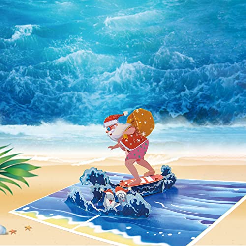 FONBAY Biglietti di Natale 3D, biglietti d'auguri pop-up 3D a tema albero di Natale per vacanze invernali (surf)