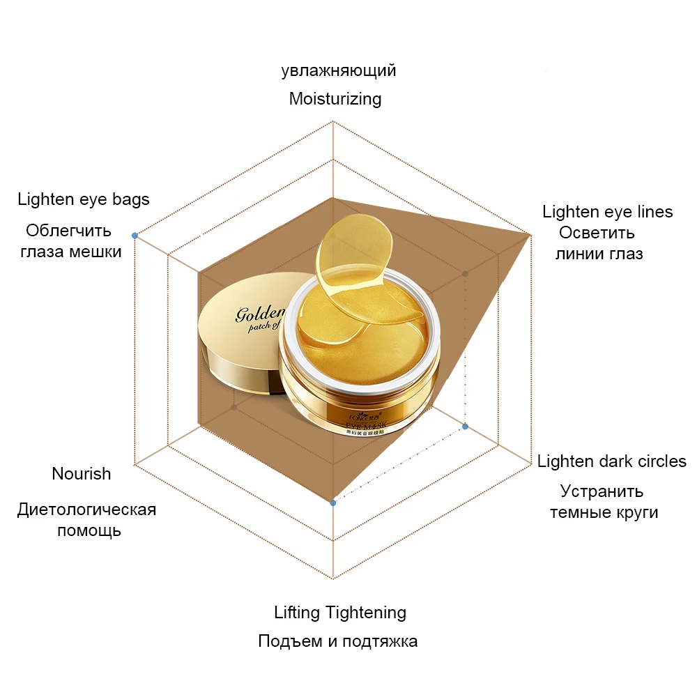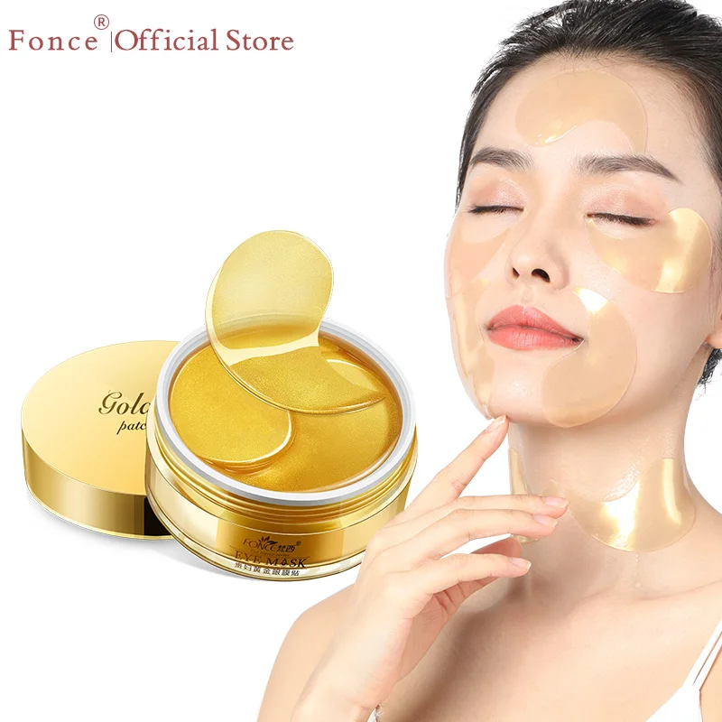 Fonce 24K Gold Crystal Collagen Gel Eye patches mask Ageless Sleep Mask Remover Wrinkle Anti Age Bag Eye Treatment Dark Circles