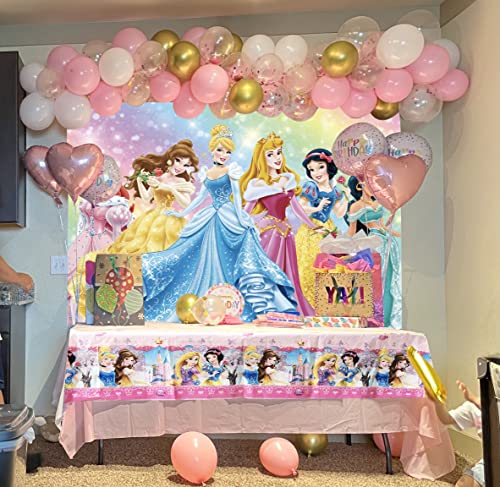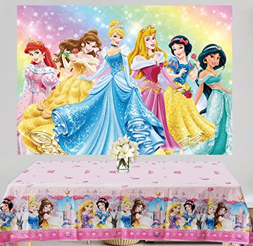 通用 LXN Fondale Principessa e Tovaglia Principessa Adatto per Ragazze Festa di Compleanno Fondale Foto Principessa 1,8x1,2m Tovaglia Principessa Usa E Getta, 1,8x1,2m