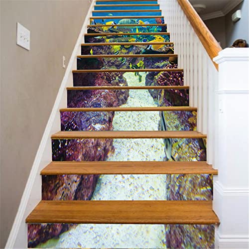 FLFK 3D Fondali marini Pesce Autoadesiva Le scale Alzate Murale Vinile decalcomania Adesivi casa arredamento 39,3 pollici x7,08 pollici x 13 pezzi
