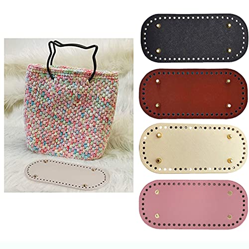 Fondo per Borsa in Cuoio,4 Pezzi Fondo Borsa Ovale, Fondo per Uncinetto in Pelle, Tappetino Borse all'Uncinetto Bottom Shaper Pad, per Fai da Te Borsa a Uncinetto Artigianale, Borse a Tracolla,22x10cm