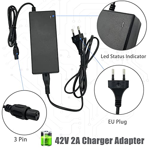 FONGKE Adattatore di Alimentazione per Caricabatterie 42V 2A per Hoverboard 2 Ruote Scooter Elettrico autobilanciato Caricabatterie Universale EU 3 Pin