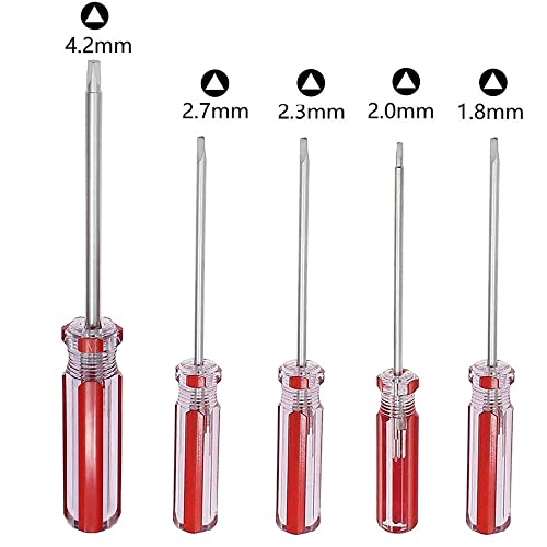 Fongmore Set di 5 cacciaviti magnetici a testa triangolare 1,8 mm 2,0 mm 2,3 mm 2,7 mm 4,2 mm Kit di utensili per cacciaviti per viti triangolari per il fissaggio della batteria dei giocattoli ...