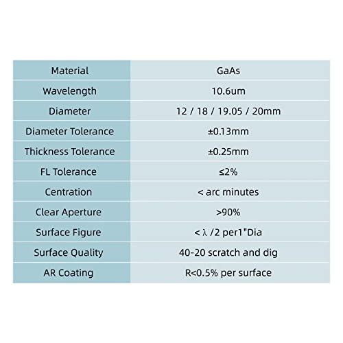 FONLAND Lente di messa a fuoco GaAs per macchina per incidere di taglio laser CO2 10,6um, diam. 19,05mm (0,75") FL 38.1mm (1,5")