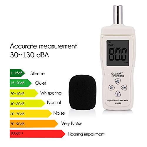 【Display retroilluminato a LED e peso leggero】La retroilluminazione aiuta a leggere nell'ambiente buio. Il tester di decibel è leggero e facile da trasportare.