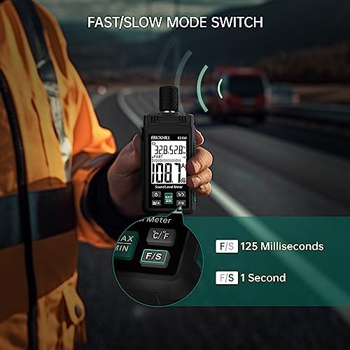 Fonometro ERICKHILL ES100 Misuratore di Decibel 30-130dBA, Misuratore Portatile di Livello Sonoro con con schermo LCD retroilluminato da 2,25" per Casa, Vicini Rumorosi, Fabbrica, Ufficio