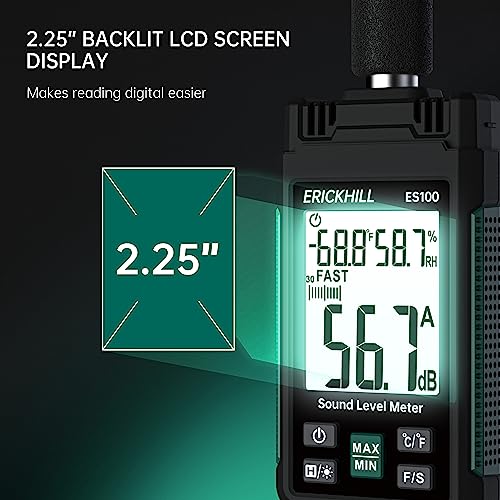 【Misurazione accurata】ERICKHILL ES100 utilizza un microfono a condensatore altamente sensibile e preciso per catturare il suono. Intervallo di misurazione: 30-130 dB;