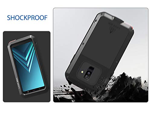 FONREST Custodia Galaxy A6, Love Mei Robusto Ibrido Alluminio Metallo Armatura Antiurto Antipolvere Cover per Samsung Galaxy A6 6 Pollice con Vetro temperato (Rosso)