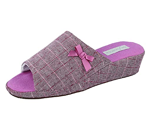 De fonseca Ciabatte Donna Pantofole punta aperta Cotone Antiscivolo casa Viaggio Pr/Es con zeppa (ROSA, 36, numeric_36)