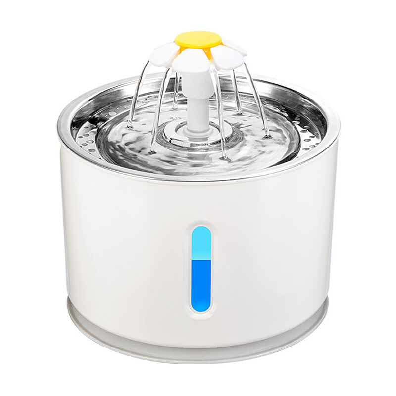 Top igienico in acciaio inossidabile - Sei preoccupato che l'acqua che beve il tuo animale domestico non sia abbastanza sicura? Grazie al suo coperchio in acciaio inossidabile, questa fontana per gatti è più facile da pulire rispetto alle fontane in plastica. Così puòinibisce efficacemente la crescita dei batteri e fornisce al tuo animale domestico una fonte d'acqua più sicura. [Funzionamento ultra silenzioso] I tuoi animali domestici non vogliono bere acqua a causa dei rumori? Con una pompa ultra silenziosa, questa fontana per gatti funziona a partire da 40 dB. I tuoi animali domestici potrebbero divertirsi a bere daacqua di alta qualità con la fontana per gatti. Non dovrai più preoccuparti di spaventare il tuo compagno animale. [Fino a 3 schemi di flusso] Sei frustrato perché al tuo animale domestico non piace bere acqua? Questa fontana per gatti ha tre diversi modelli di flusso: bolla di fiori, cascata di fiori e fontana delicata. Ogni impostazione rispondealle esigenze di diversi
