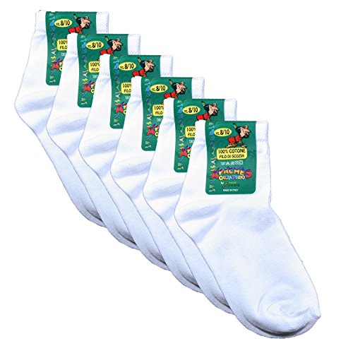 Fontana Calze, 6 paia di calze bimbo in Cotone Filo di Scozia elasticizzato modello Caviglia. BIANCO 22-25...