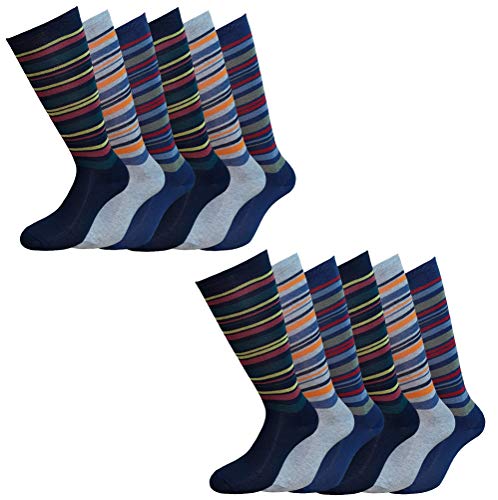 Fontana Calze, 12 paia di calze lunghe bambino ragazzo in caldo cotone elasticizzato. Prodotto Italiano (35-38, 12 a righe3)