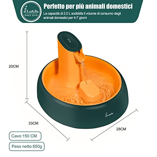 Lu&Ba Fontana per gatti, Distributore d'acqua da 2L per gatti con pompa in estremamente silenziosa con filtro