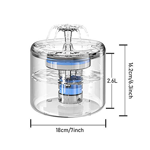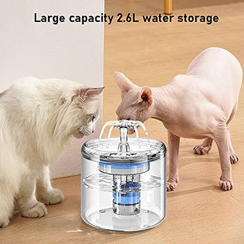 2,6L Fontanella per gatti, fontana per gatti automatica silenziosa da, fontanella per gatti, rubinetto per fontanella automatico trasparente con pompa super silenziosa