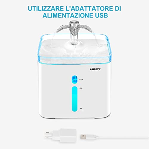 NPET Fontanella per Gatti Cani con sensore, Rubinetto Fontanella Trasparente con Pompa Super silenziosa, Ciotola con 1 Filtro a Carbone Attivo, Luce Blu a LED, Capacità 3L, WF020