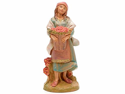 Fontanini pastorella con fiori 12cm statuina in resina presepe (f-113)