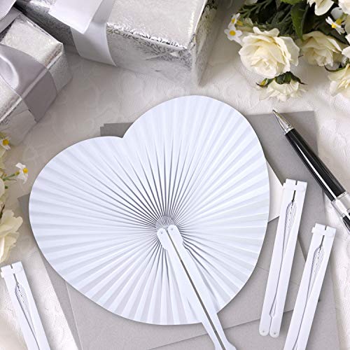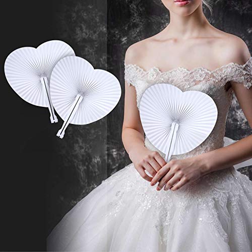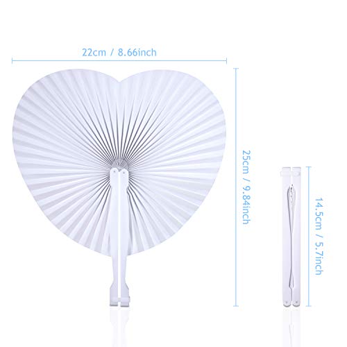Foonii Ventaglio di Carta,28 Pezzi Bianchi Pieghevoli Ventaglio di Carta Portatile A Forma di Cuore Matrimonio Carta Ventaglio per Matrimonio Decorazioni Nozze Diametro 24 cm