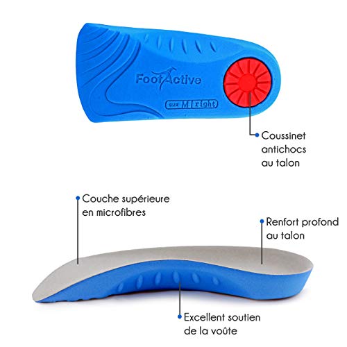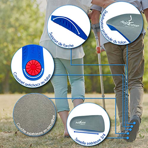 Approvato di qualità superiore: la scelta preferita di soletta ortopedica 3/4 dai podologi e dai fisioterapisti, le solette mediche FootActive garantiscono un trattamento efficace e un sollievo dal dolore del tallone, dei talloni, della fascite plantare, del dolore al piede e della tendinite.