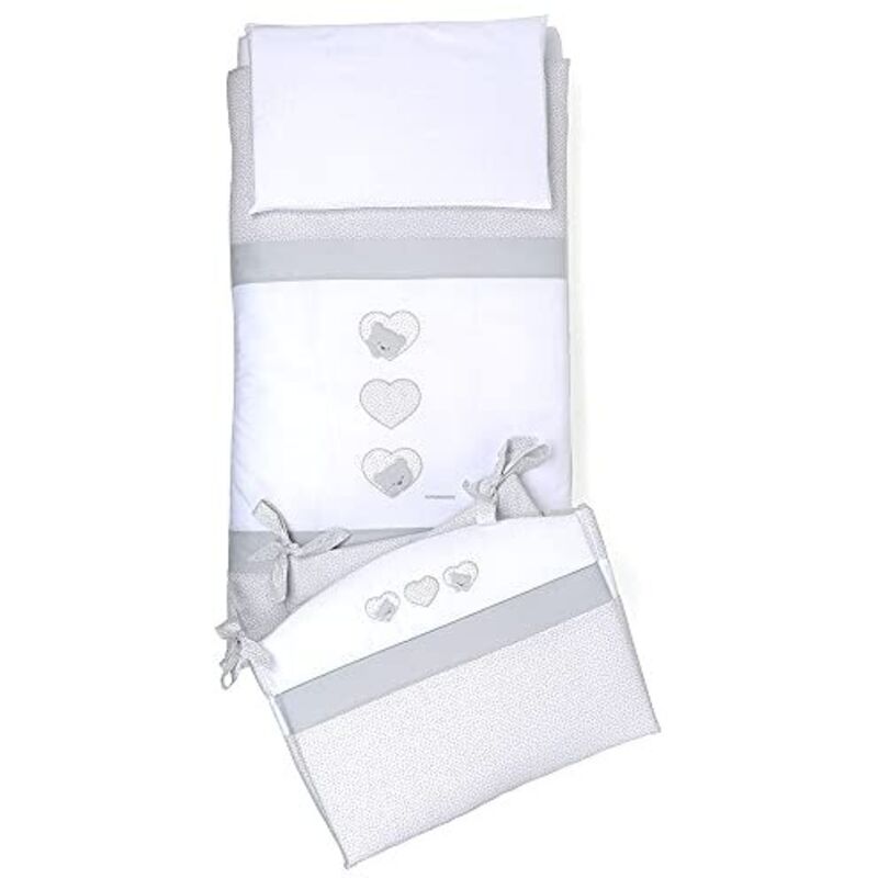 Foppapedretti Completo Piumone Lovely con Paracolpi e Federa di Foppapedretti è caratterizzato da raffinati ricami di cuori e orsetti. Il set tessile è composto da: Paracolpi imbottito - misure: 42 x 5 x 193 cm (altezza x profondità x lunghezza) Piumone imbottito - misure: 35 x 57 cm (altezza x lunghezza) Federa cuscino - misure: 147 x 5 x 128 cm (altezza x profondità x lunghezza) Il piumone e i paracolpi sono imbottiti con poliestere e rivestiti in 100% puro cotone. Lavabile a mano a 30 gradi.