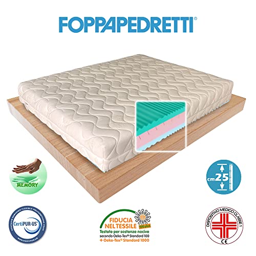 Foppapedretti - Materasso in Memory a 3 strati TreeMemory con rivestimento sfoderabile in Fibra di Legno (120x190)