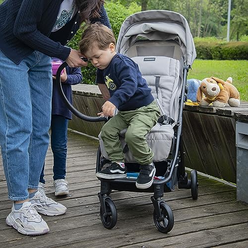 Foppapedretti Passeggino Compatto Jumbo, 0-22 Kg (0-4 anni), Chiusura ad 1 mano, Chiusura Self-Standing, Schienabile Regolabile, Ruote Ammortizzate, Cesto Porta Oggetti, Telaio in Alluminio, Graphite