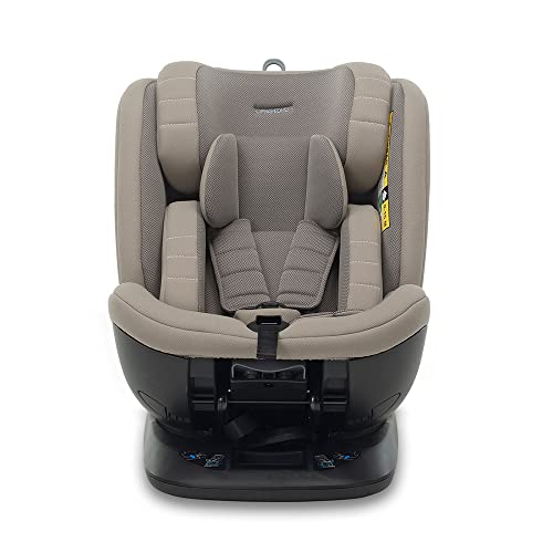 Foppapedretti Seggiolino Auto Clock I-Size, Seduta Girevole a 360°, per bambini da 40 a 150 cm di altezza, 0-12 anni, conforme ECE R129, Fissaggio Dualfix (Isofix e non), Safe Body Protection, Desert