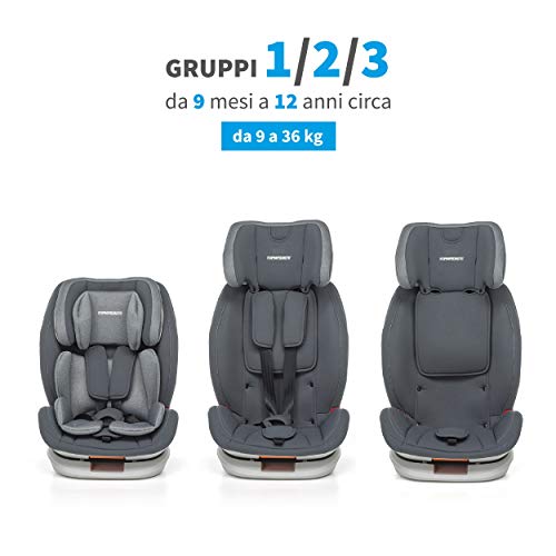 Seggiolino auto omologato per i gruppi 1, 2 e 3 per bambini da 9 a 36 kg (da 9 mesi a 12 anni circa) con sistema di aggancio isofix