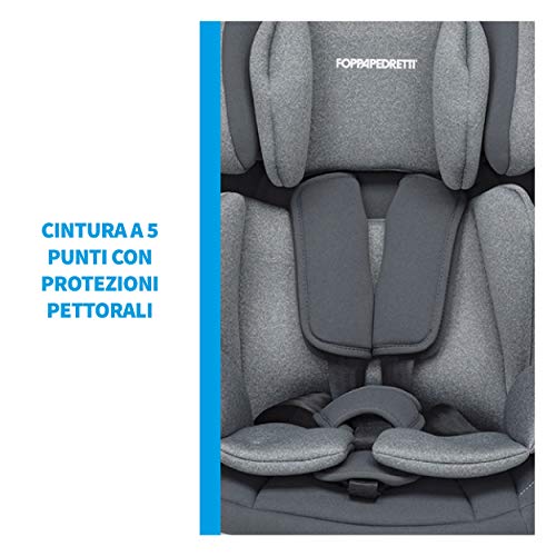 Foppapedretti Seggiolino Auto Tourist Gruppo 1,2,3 (9-36 Kg), per Bambini da 9 Mesi a 12 Anni circa, Collezione 2021, Grey