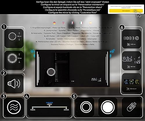 ✅ADOTTATE IL VOSTRO SPECCHIO - Vi offriamo opportunità di creare une combinazione irrepetibile che soddisfa le Vostre preferenze Grazie ad una opzione innovativa di adattazione potete scegliere dimensioni, colore di LED, tipo di interruttore, schermo meteo ed persino un altoparlante Bluetooth!