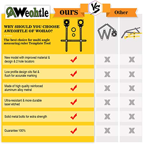 ⚠⚠ Si prega di confermare il negozio "Wohao" prima dell'acquisto. Lo strumento angolare è uno strumento di misurazione e due posizioni dei fori integrate. Questo righello multi angolo pieghevole, resistente e portatile. Ideale per misurare la superficie di