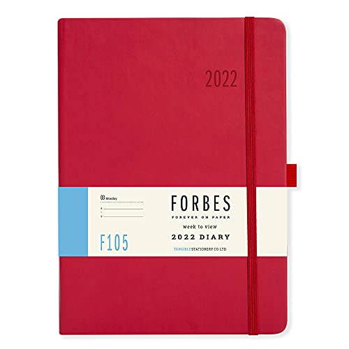 Forbes, agenda 2022 dal design classico, formato A5, vista settimanale, morbida al tatto (lingua italiana non garantita), rosso
