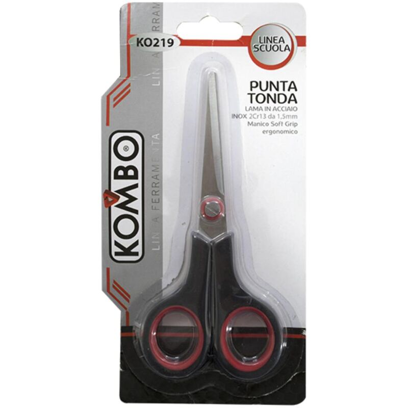 KOMBO - Forbici per Bambini/Studenti 5" Lama in Acciaio INOX 2Cr13 da 1.5mm. Manico Soft Grip Nero e Rosso Taglio e Rifinitura Utensili a Mano