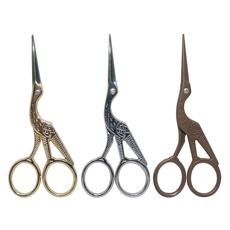 Nome del prodotto: forbici per gru Colore: oro argento marrone Materiale: acciaio Specifica: lunghezza 11,5 cm e 9,5 cm Specifiche di vendita Quantità: 1 pezzo Confezione: a volte in cartone, a volte no. Applicazione: taglio dell'ago, taglio della carta, artigianato, artigianato degli studenti.