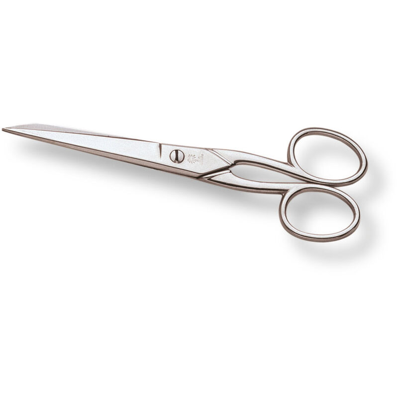 FORBICI DA CUCITO Castellano 5"/127mm 08241200 Palmera IN ACCIAIO AL CARBONIO AD ALTE PRESTAZIONI. FORGIATURA A CALDO. DUREZZA LAME 50-54 HRC. LAMA DRITTA. FINITURA: NICHELATA. MONTAGGIO CON VITE PER REGOLARE LA PRESSIONE